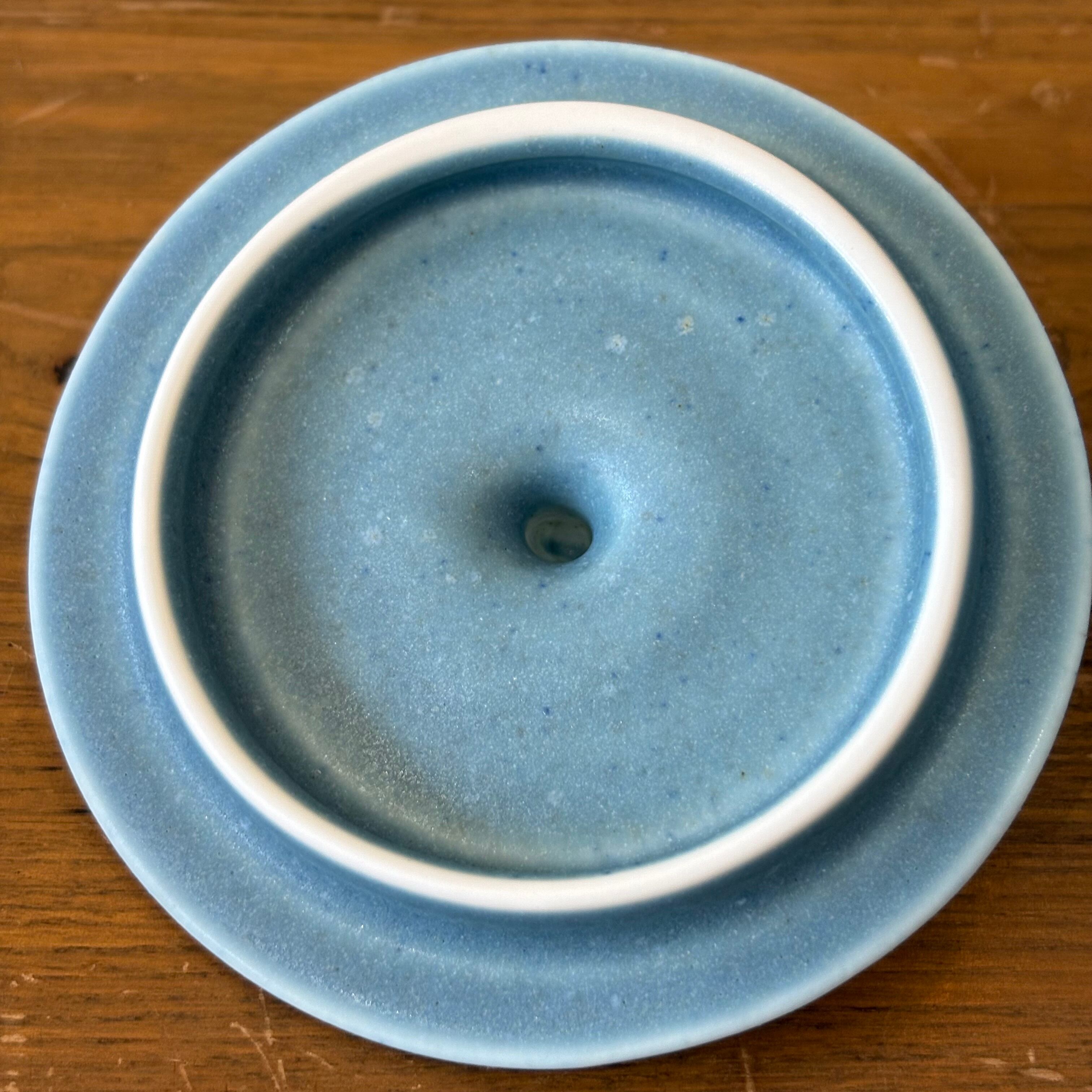 くすんだ青色で優しい雰囲気に仕上がりました。細かい鉄点や、釉薬の流れやムラが全体に見られます。