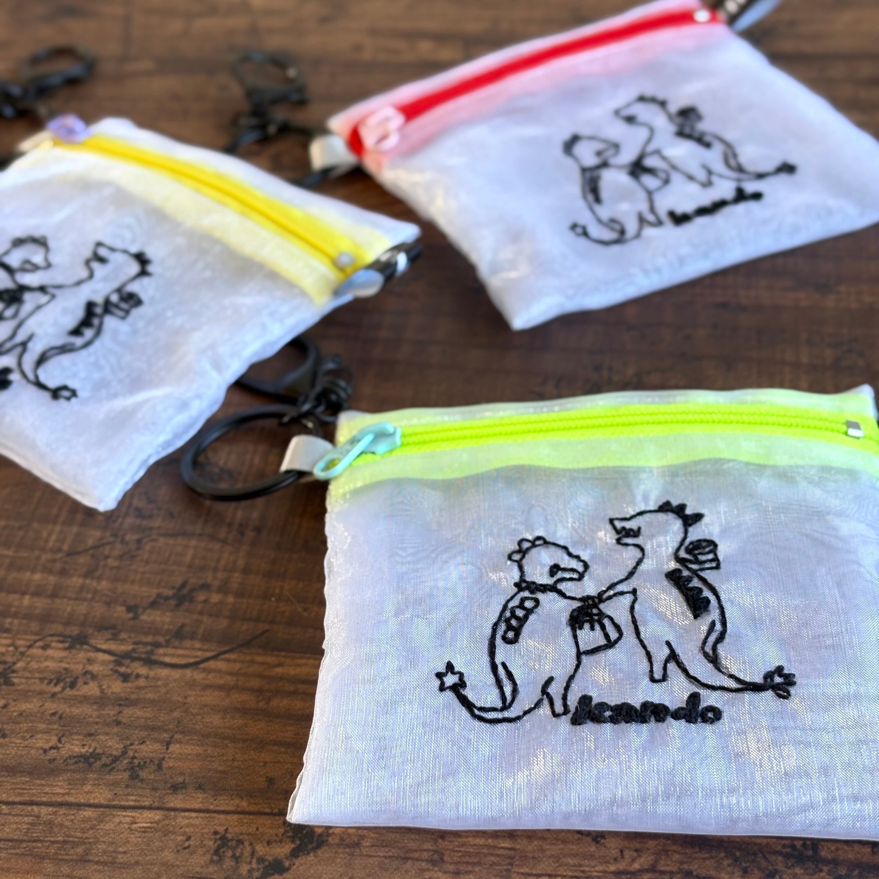 KANDOのロゴを怪獣にアレンジして、一針一針さしたミニポーチキーホルダーです。