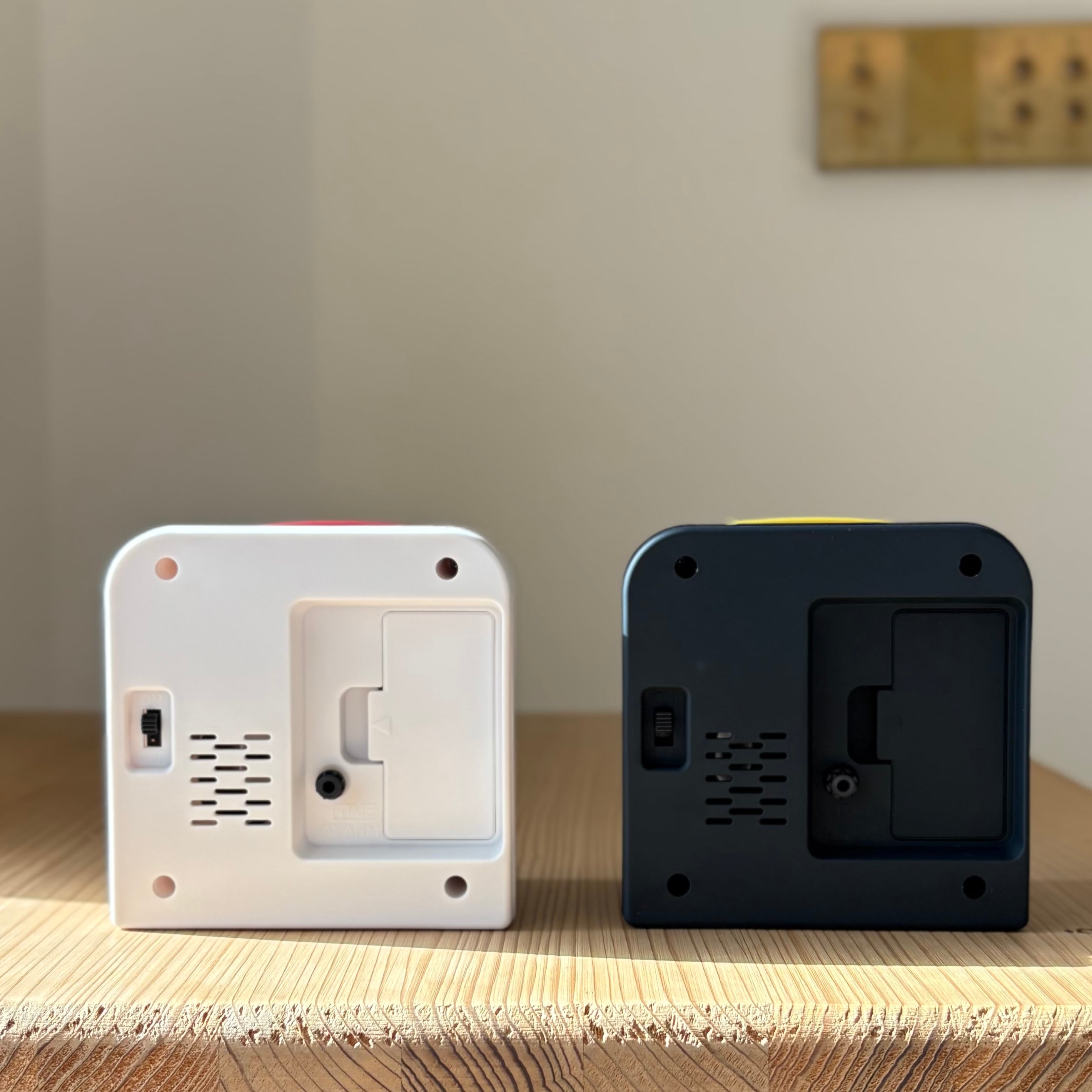 時針・分針・秒針はカラーアクセントが施され、洗練されたデザインは、デスクやベッドサイドにぴったり。アラーム/スヌーズ機能付き。