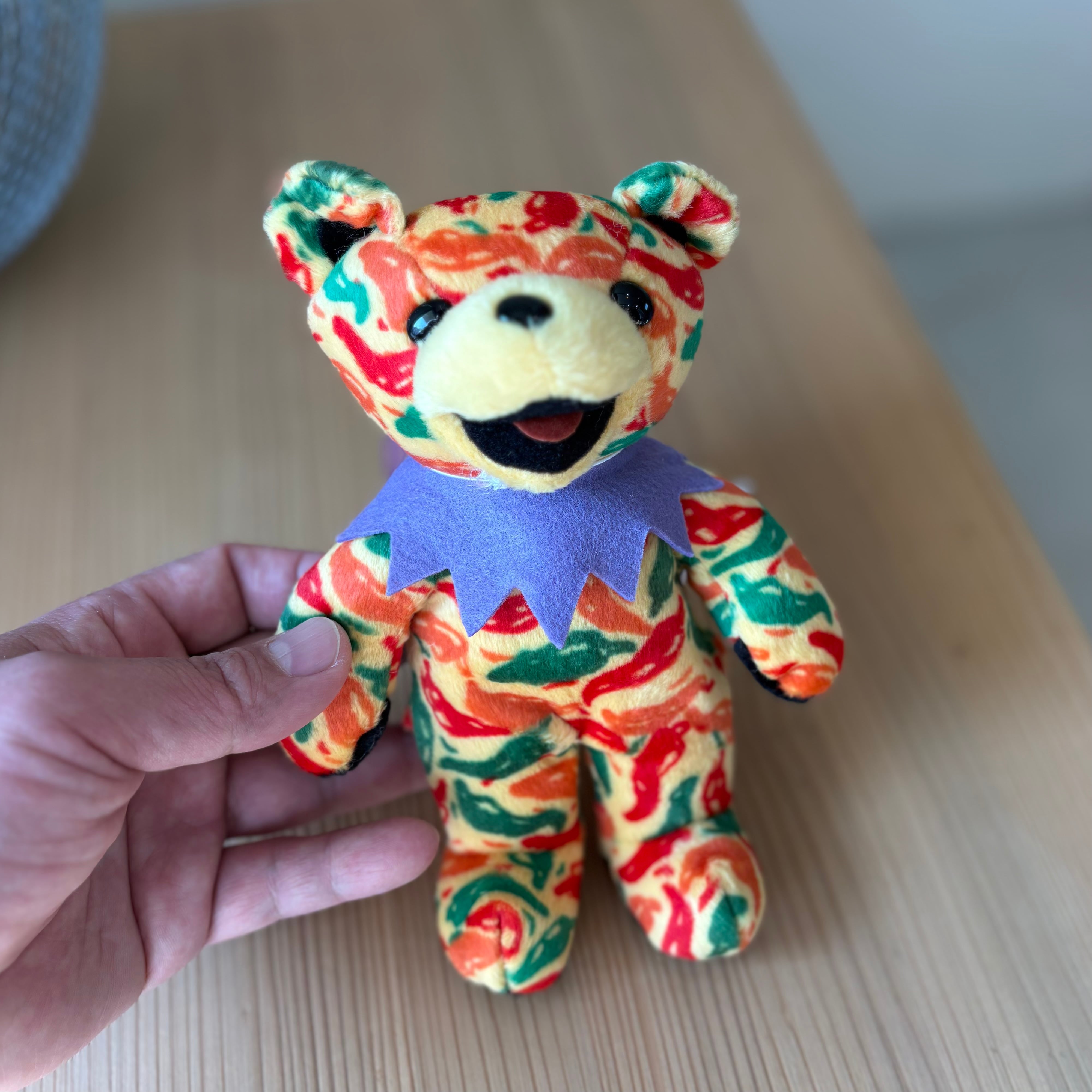 カラフルでサイケデリックなクマのぬいぐるみ。