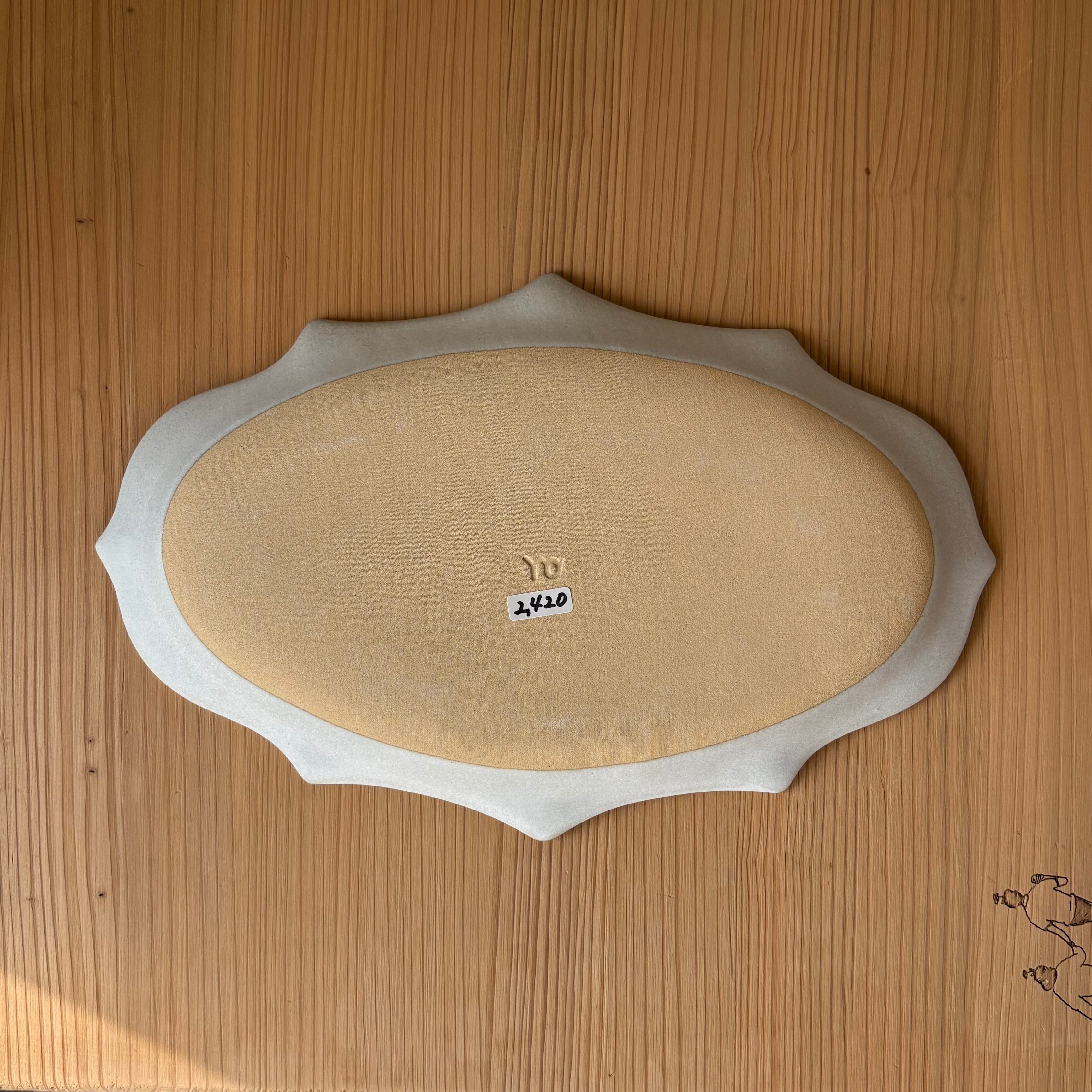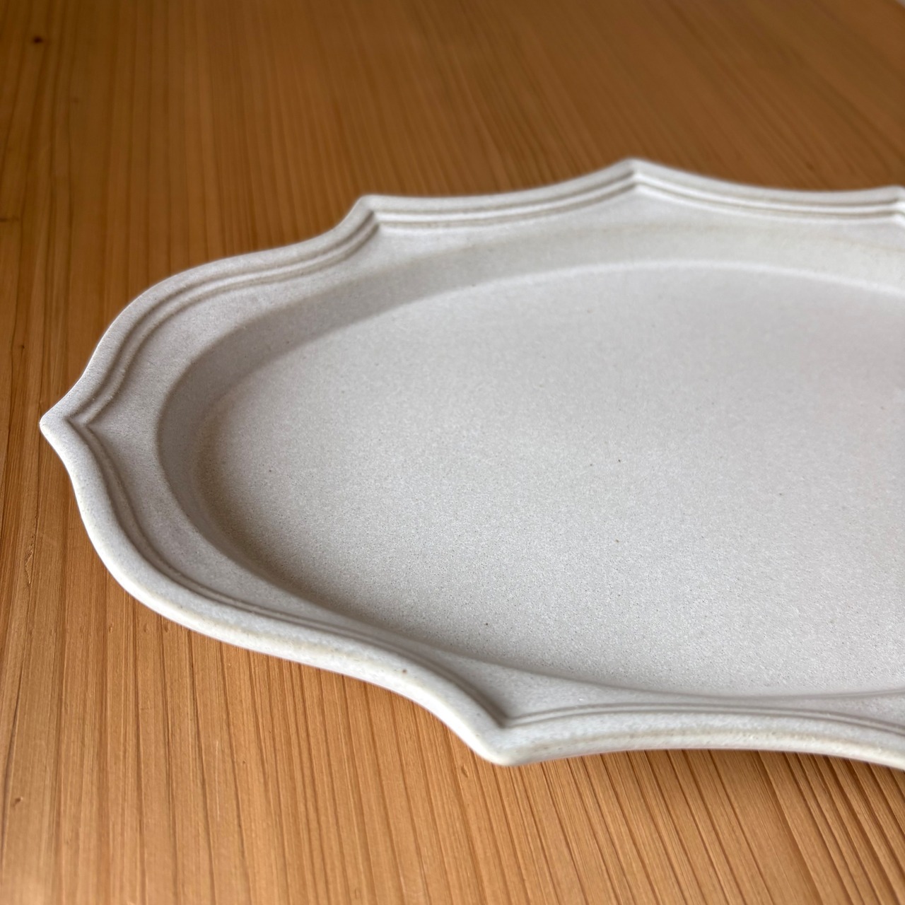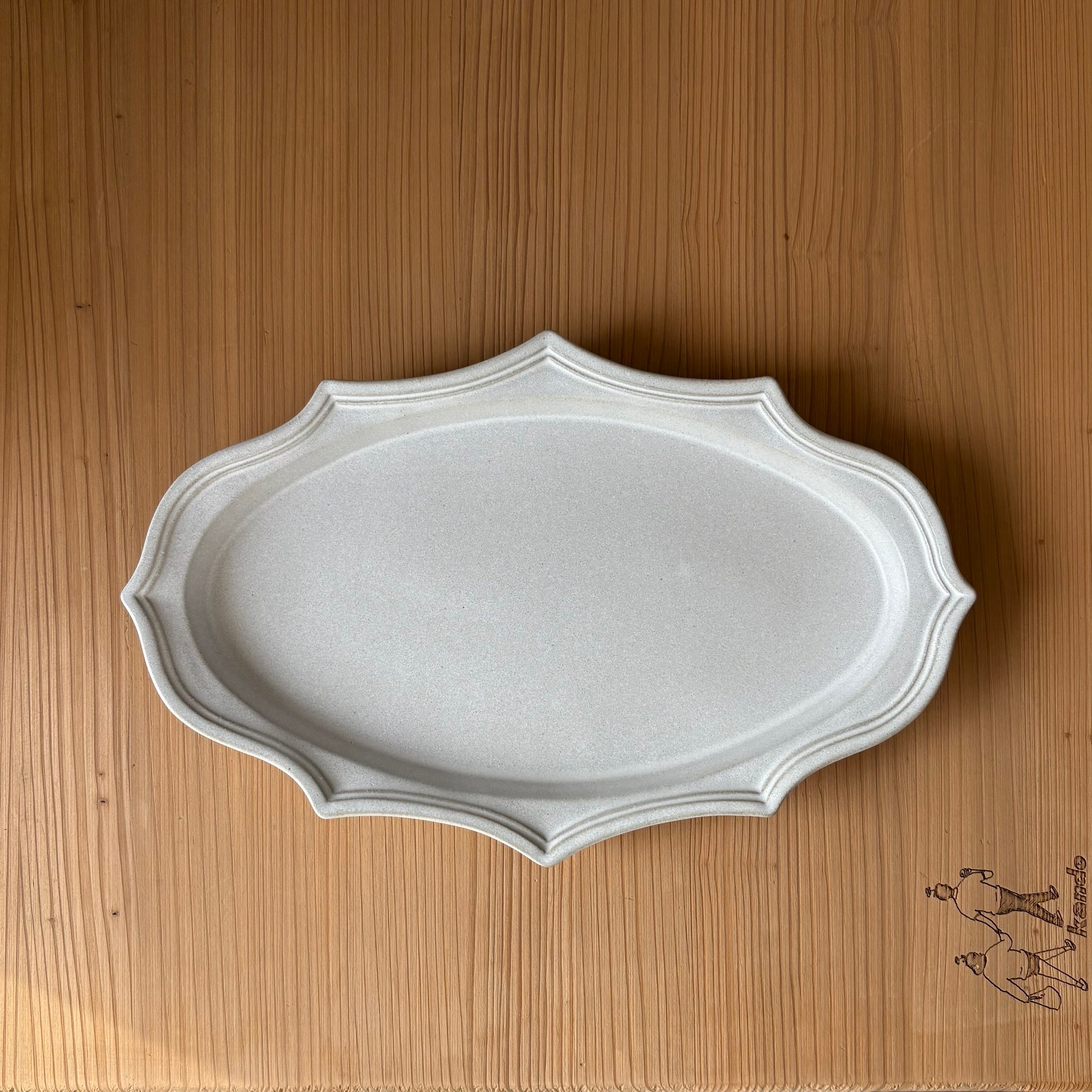 アッシュホワイト 楕円稜花皿 大