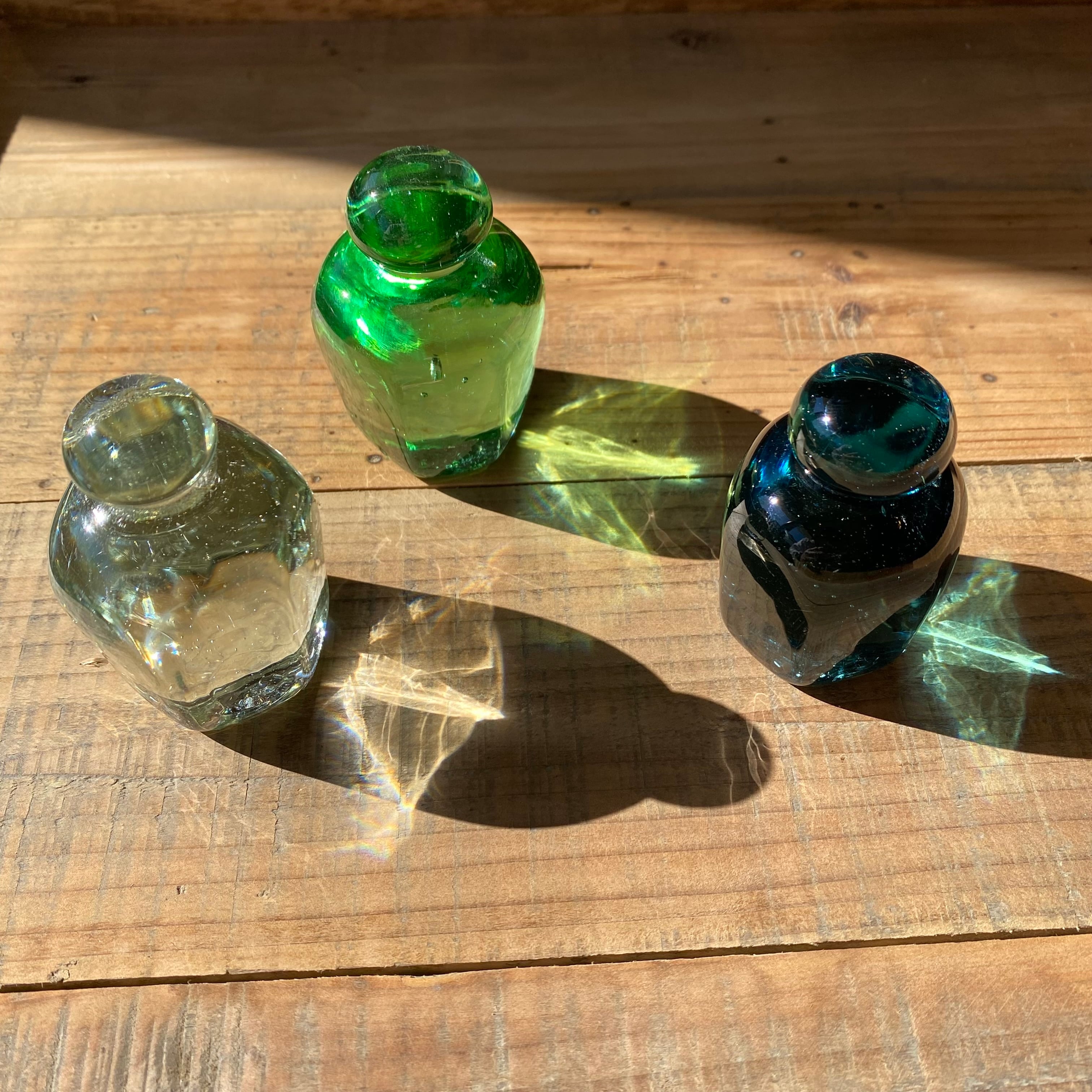 それぞれの瓶の持つ色をそのまま活かし、職人が丹精込めて生み出した再生ガラスのペーパーウェイトです。