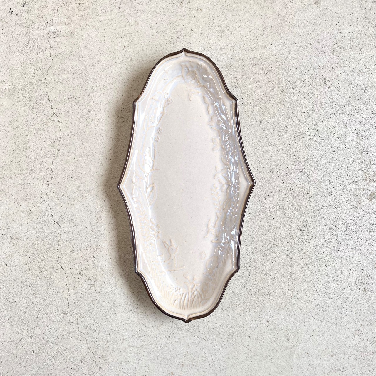 長細い楕円型のお皿に規則的な切込みを入れた形状(=
